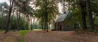 Een mistige herfstochtend bij de Willibrorduskapel in het bos van 'Landgoed Geijsteren' (Venray, Noord-Limburg).
