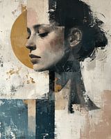 Mixed media art collage. Portret van een jonge vrouw in collage stijl en zachte kleuren. Kies zelf het formaat en materiaal en maak er een echte blikvanger van voor jouw interieur.