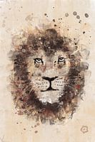Mixed media kunstwerk van een leeuwen kop van Emiel de Lange