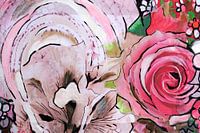 Mixed media met veschillende bloemen in de kleur roze met retro achtergrond. Later beschilderd en in getekend.