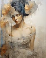 Mixed media portret met bloemen in aardetinten. Kies zelf het formaat en materiaal en maak deze blikvanger passend voor jouw interieur.
