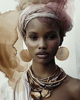 Mixed media portret van een Afrikaanse vrouw. Kies zelf het formaat en materiaal bij dit werk en maak het helemaal passend voor jouw interieur.
