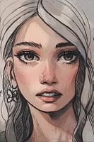 Koop dit portret Mixed media portret vrouw van Emiel de Lange op canvas, aluminium dibond, (ingelijste) fotoprint, behang en ArtFrame, op maat geprint in Fine-Art kwaliteit.