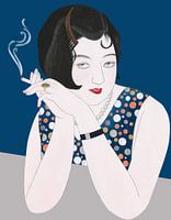 Het is een portret van een Japanse Modan Gāru (ook wel Moga genoemd), een Japanse vrouw die westerse mode en levensstijl volgde in de periode na de Eerste Wereldoorlog. Moga's werden gezien als het sekssymbool van de jaren 20 in Japan en brachten veel commotie teweeg. Ze waren financieel en emotioneel onafhankelijk, kozen hun eigen minnaars, rookten, keken films, en hingen rond in cafés.