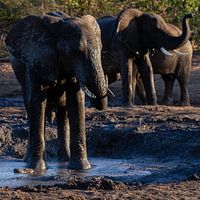 Koop de foto Modderbad in de Savanne: Olifanten bij de Waterpoel in het Krugerpark, Zuid-Afrika. van Arthur van Iterson als print op canvas, aluminium dibond, (ingelijste) fotoprint, behang en ArtFrame. Voor jou op maat geprint in Fine-Art kwaliteit.