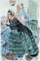 Henri Boutet, 1851 1919 Parijs, was een Franse Belle Epoque kunstenaar wiens werk zich richt op het genre La Parisienne. Zijn onderwerp zijn vrouwen, variërend van gewone winkel assistenten tot elegante dames, koketterie en vrouwelijkheid. In 1902 publiceerde hij Les Modes feminines du XIXe Siècle. Zijn 100 droge naald etsen toonde de ontwikkeling van de mode voor elk jaar 1801-1900. De illustraties werden met de hand-gekleurd, met veel aandacht voor detail, en een behandeling die zijn liefde toonde voor het onderwerp.