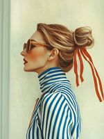 Over ‘Model in gestreepte blouse en rode strik in haar’ van Franka Poulain