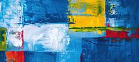 Details: abstract, kunstwerk, modern, schilderij, canvas, dynamisch, textuur, penseelstreken, blauw, geel