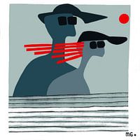 Het “kiekje”. Moderne, abstracte weergave van een stelletje op vacantie, in zee, onder een bloedhete zon.