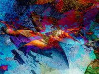 Modern, Abstract Digitaal Kunstwerk in Blauw, Oranje, Rood van Art By Dominic