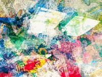 Modern, Abstract Digitaal Kunstwerk in Blauw, Rood, Pastelkleuren van Art By Dominic