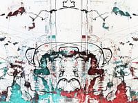 Modern, Abstract Digitaal Kunstwerk in Blauw, Rood, Wit
