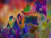 Modern, Abstract Digitaal Kunstwerk in Oranje, Roze, Paars, Groen