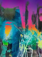 Modern, Abstract Digitaal Kunstwerk in Roze Blauw Groen