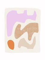 Geometrische vormen in beige en lila op een wit met beige achtergrond.