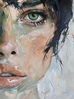 Levendig, modern en abstract portret. Een opvallende blikvanger voor je interieur! Kies zelf het formaat en materiaal van dit werk en stem het volledig af op jouw wensen.
