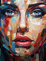 Levendig, modern en abstract portret. Een opvallende blikvanger voor je interieur! Kies zelf het formaat en materiaal van dit werk en stem het volledig af op jouw wensen.