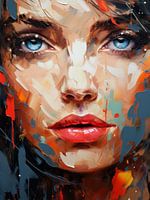 Levendig, modern en abstract portret. Een opvallende blikvanger voor je interieur! Kies zelf het formaat en materiaal van dit werk en stem het volledig af op jouw wensen.