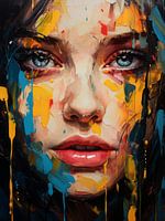 Levendig, modern en abstract portret. Een opvallende blikvanger voor je interieur! Kies zelf het formaat en materiaal van dit werk en stem het volledig af op jouw wensen.
