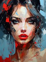 Levendig, modern en abstract portret. Een opvallende blikvanger voor je interieur! Kies zelf het formaat en materiaal van dit werk en stem het volledig af op jouw wensen.