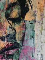 Levendig, modern en abstract portret. Een opvallende blikvanger voor je interieur! Kies zelf het formaat en materiaal van dit werk en stem het volledig af op jouw wensen.