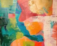 Details: abstract, kunst, goud, roze, groen, blauw, moderne kunst, kleurrijk, schilderij