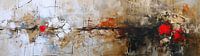 Modern Abstract met Rode Accenten - De stijl zweeft ergens tussen abstract en een vleugje abstract expressionisme, met aandacht voor de viscerale impact van de kleuraccenten en de ruwe, bijna industriële achtergrond.