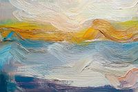 Abstract schilderij met vergrijsde (donker en licht) blauw- en goudgele tinten