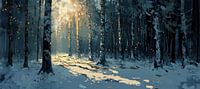 Over ‘Modern Alpine Bos | Beneath the Veil of Dusk’ van Abstract Schilderij