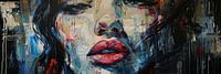 Details: portret, abstract, modern, blauw, rood, zwart, wit, gezicht, dynamisch, emotie