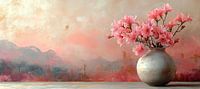 Details: stilleven, bloemen, vaas, roze, modern, schilderij, kunst, interieur, decoratie, bloemenpracht
