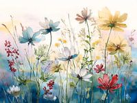 Koop dit bloemen kunstwerk Modern Botanisch schilderij: Wilde bloemen van Studio Pieternel op canvas, aluminium dibond, (ingelijste) fotoprint, behang en ArtFrame, op maat geprint in Fine-Art kwaliteit.