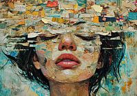 Details: portret, collage, expressie, modern, kunstwerk, vrouw, kleurrijk, gezicht, creatief, artistiek