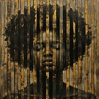 Details: portret, goud, zwart, elegantie, modern, textuur, vrouw, kunst, expressief, contrast