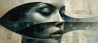 Details: vrouw, gezicht, modern, kunst, portret, abstract, geometrisch, oog, lippen, tegels