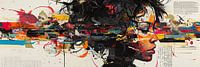 Modern Portret - kleurrijk, dynamisch, vrouw, portret, uitgesproken, modern, artistiek, gemengde technieken, abstracte elementen