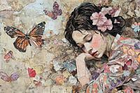 Modern Portret - kleurrijk portret vrouw, vlinders, bloemen