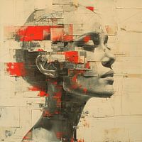 Details: vrouw, portret, abstract, geometrisch, modern, gezicht, kunst, rood, zwart, wit