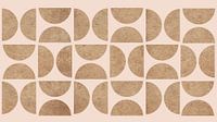 Een abstract schilderij in aardse natuurlijke kleuren van organische ronde geometrische vormen op een diepe textuur met een indruk van Scandinavische kunst uit Noord-Europa met een vleugje Japanse cultuur.
