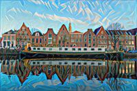 Koop dit abstracte kunstwerk Modern Schilderij Haarlem Spaarne Grachtenpanden met Woonboot van Slimme Kunst.nl op canvas, aluminium dibond, (ingelijste) fotoprint, behang en ArtFrame, op maat geprint in Fine-Art kwaliteit.