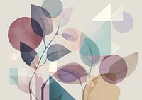 Modern Serenity with Leaves - Dit abstract schilderij toont een harmonieuze samenstelling van bladeren, samen met geometrische vormen in zachte, verfijnde kleuren die een gevoel van rust en natuurlijkheid oproepen.
