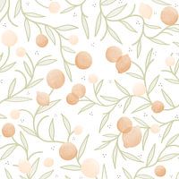 De oranje sinaasappels wisselen elkaar af tussen de groene bladeren. Met de witte achtergrond is deze print geschikt voor elke…