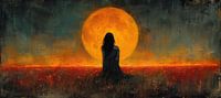Modern Vrouwenportret | Solitary Night's Whisper - Modern schilderij, mystieke vrouw, avondlandschap
