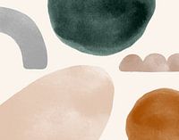 Modern abstract aquarel in aardetinten. Organische vormen in beige, bruin, grijs en groen. Woonstijl bohemian.