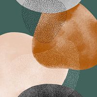 Modern abstract aquarel in aardetinten, organische vormen. Bruin, terracotta, goud, groen, zwart, grijs en wit.