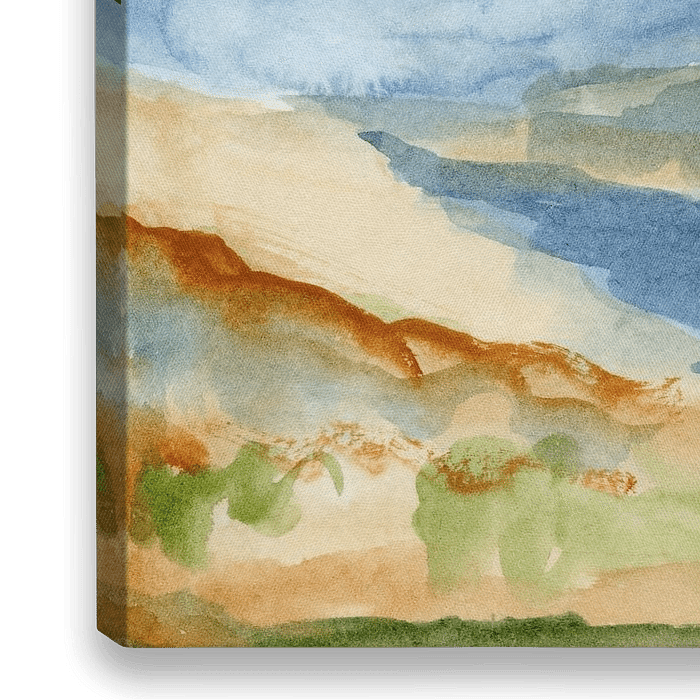 Koop dit landschapskunstwerk Modern abstract aquarel landschap. Blauw, groen, terra. van Dina Dankers als print op canvas, aluminium dibond, (ingelijste) fotoprint, behang en ArtFrame. Voor jou op maat geprint in Fine-Art kwaliteit.