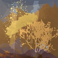 Modern abstract botanisch. Planten en vormen in goud, oker, paars en blauw van Dina Dankers