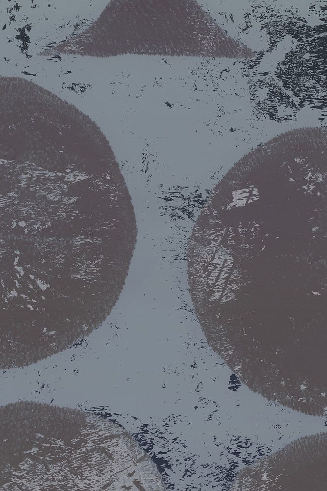 Mixed media moderne kunst. Geometrische vormen, complexe texturen, donkere minimalistische kleuren. Design, Scandinavisch, Industrieel, Minimalistisch, Basis interieurstijl.