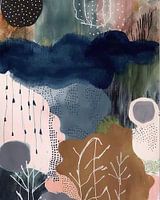 Modern abstract in aardetinten en pastel. Mixed media abstract landschap. Krijt, aquarel en markers. Mooi in zowel groot als klein formaat aan de muur. Dit werk komt op alle soorten materiaal goed tot haar recht.