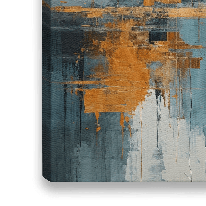 Modern abstract in blauw en goud. Kies zelf het formaat en materiaal en maak van dit werk een echte blikvanger voor je interieur.